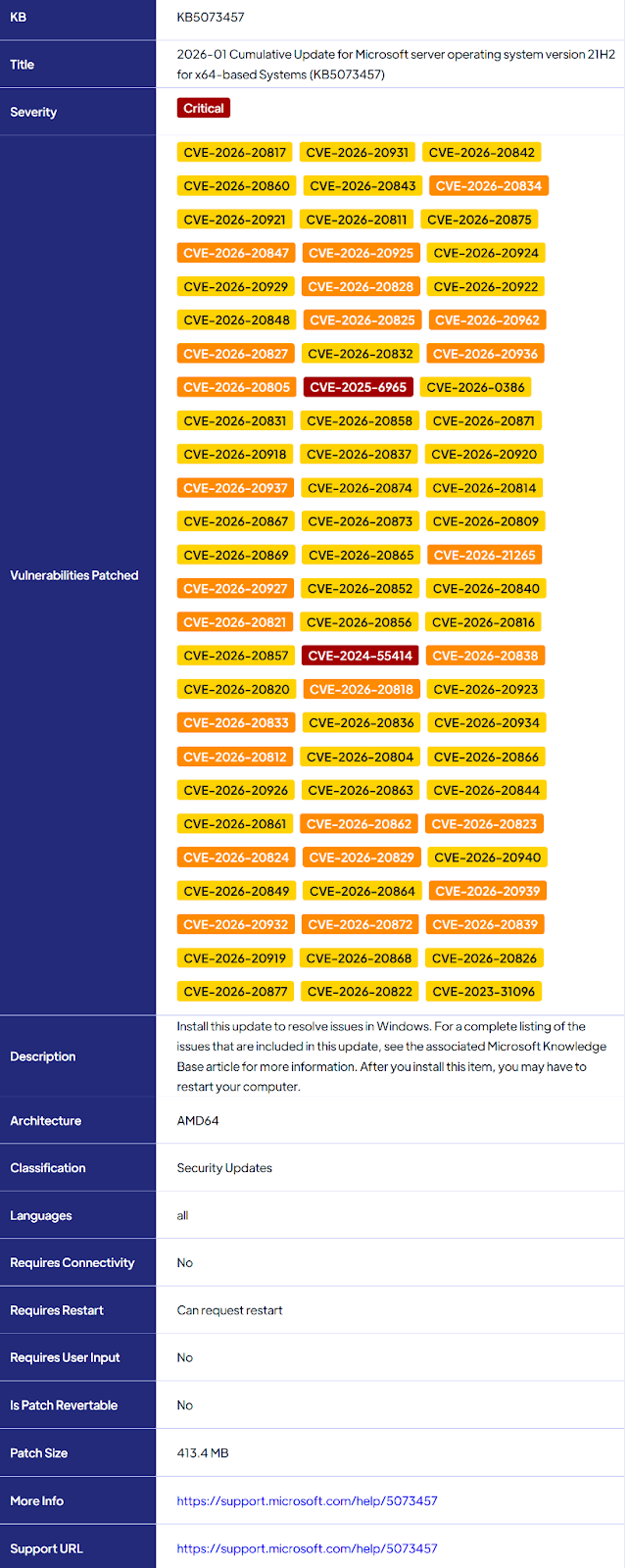 Today, we focus on deploying a patch released by Microsoft on Jan 13, 2026, 2026-01 Cumulative Update for Microsoft server operating system version 21H2 for x64-based Systems (KB5073457)